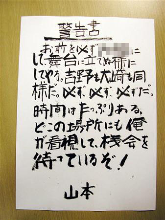 カウス氏の元に届いた脅迫状